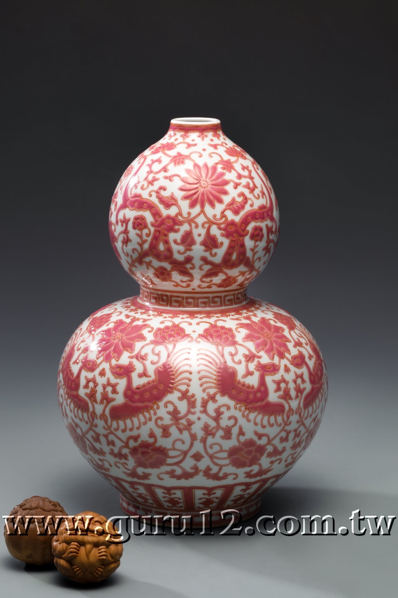 清乾隆 胭脂紅葫蘆瓶 (福祿)